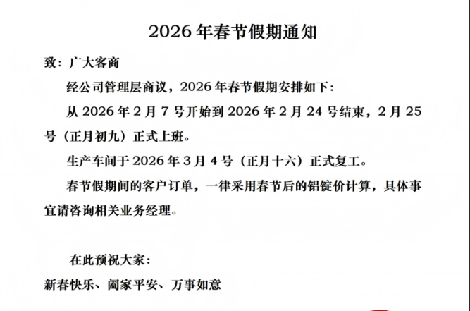万原铝原素2026年春节假期公告